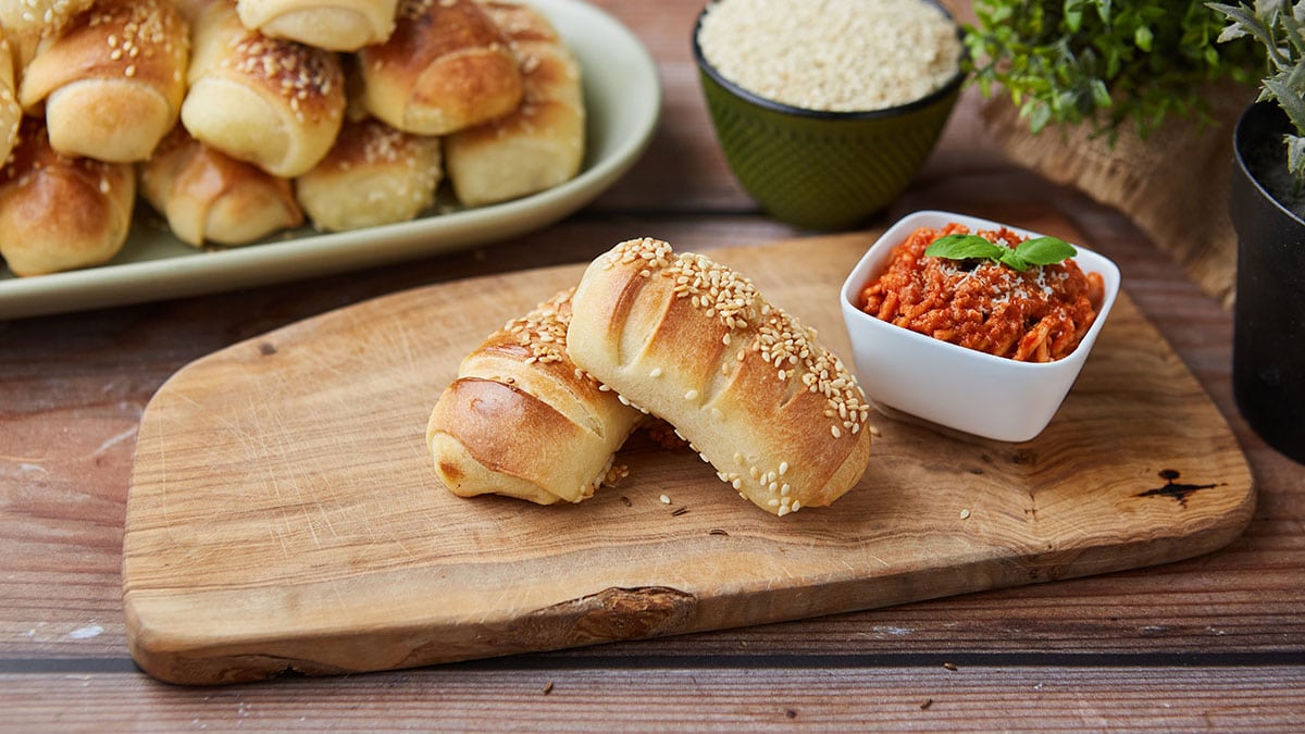 Kiflice punjene pelatom, šunkom i specijalnim miksom belog sira i kačkavalja, posute origanom