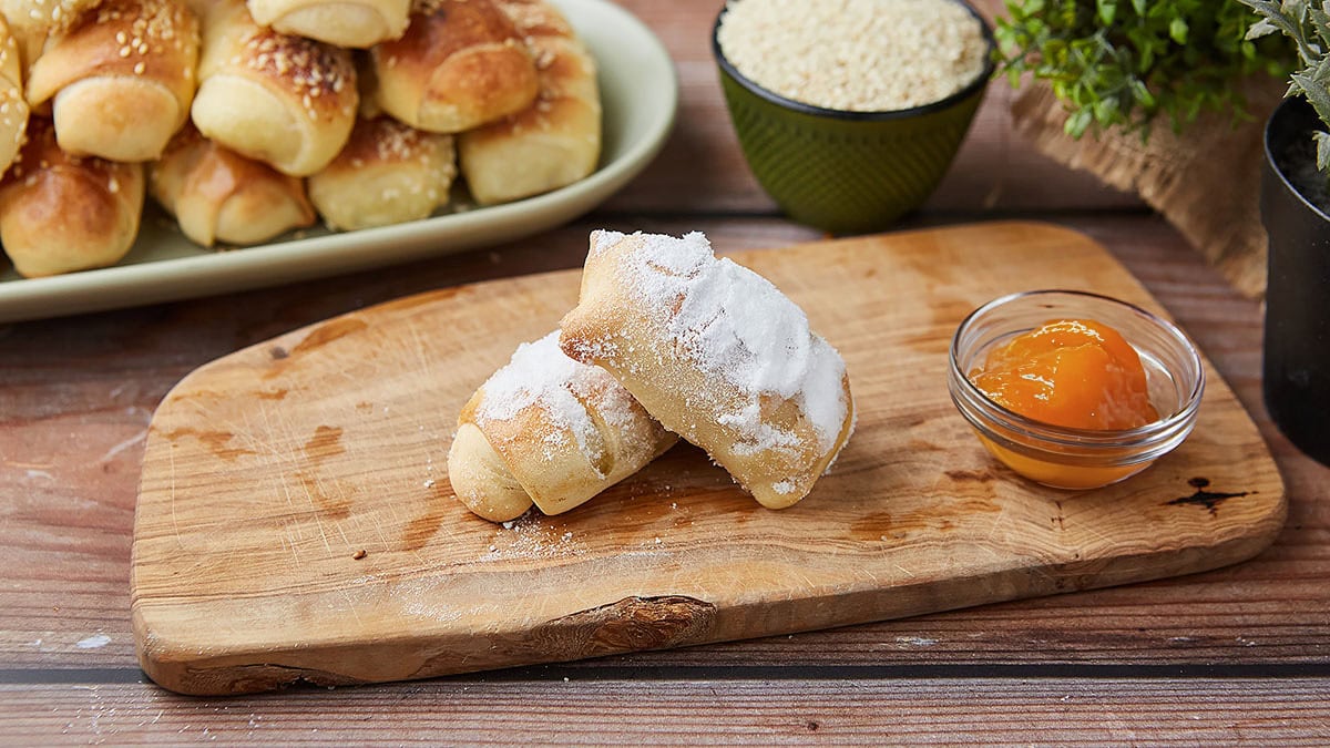 -brašno -mleko -ulje -kvasac -šećer -so -dzem od kajsije -kao posip:šećer u prahu