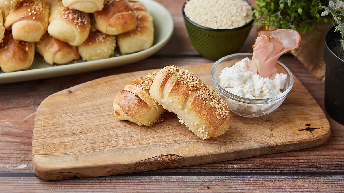 Kiflice punjene pelatom, šunkom i specijalnim miksom belog sira i kačkavalja, posute origanom